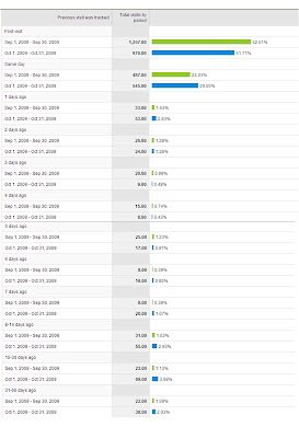 How long has it been since a visitor last visited? Again, compare this to two different time periods to see if there is a change or did things remain the same. This will give you an insight into how many days apart visitors visit the site. The below example shows you that there is an increase in the number of visitors coming back on the same day or 1 day of each other.