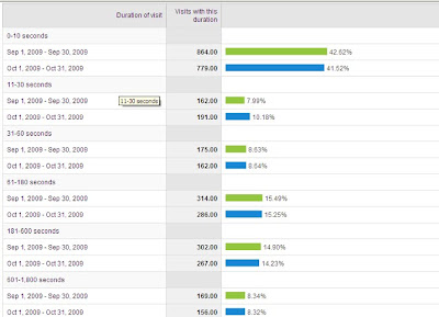 Measures the number of pages viewed by your visitors. Here you will be able to view how many pages visitors view on your site. Always compare metrics over a period of time and try to get an insight into whether visitors are viewing more pages or less. For both, you can drill down deeper to find out if your site has a well organised structure by comparing the number of pages viewed and the time spent on site. For example, if the time spent on site is going down and the number of pages viewed going up then it could be that visitors can’t seem to find the content they require and as a result end up clicking rapidly through various pages in a short amount of time trying to find the page they were looking for. The below example shows you an increase in visitors viewing 3 and 6 pages and seen a reduction on the number of visitors who only viewed 1 page.
