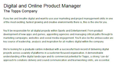 Here is a job advert (cut short) for a Digital and Online Product Manager.