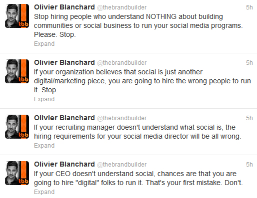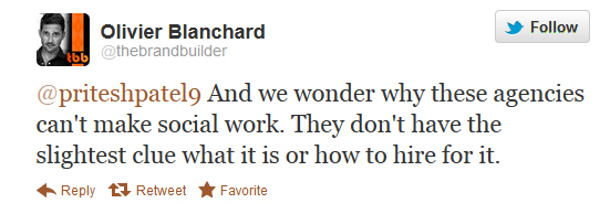 It’s become apparent that what clients are looking for is someone who knows what the heck is going on as they clearly don’t. So how do companies know who to hire and what skills to look for in a good individual? I’ll let @brandbuilder tell you this, after an interesting conversation on Twitter I think he’s going to produce some content around this subject.
