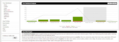 Another important part to Twitalyzer is ‘Sentiment’. The Sentiment Analysis report provides you with the ability to easily track the general tone of conversation for your business. Sentiment is analysed by picking up keywords contained within your tweets. Click on the screenshot below for an explanation of ‘Sentiment’.