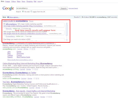 Google real time search will pull data in from sites such as Twitter, Facebook, Yahoo Answers, LinkedIn or Blogs into search result pages if the subject or topic is trending in Twitter or being searched for in large volumes. The visibility of these comments/tweets will not only be exposed to those on Twitter but also to Joe Bloggs sitting at home who doesn’t even know what Twitter is and has happily typed in your product name on Google. To top things off, these comments will appear at the top of the SERP.