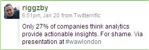 Straight away i retweeted and could not believe that only 27% of companies in the U.K. think analytics provide useful information and actionable insights into visitor behaviour and the customers digital body language. I am still fuming now!!